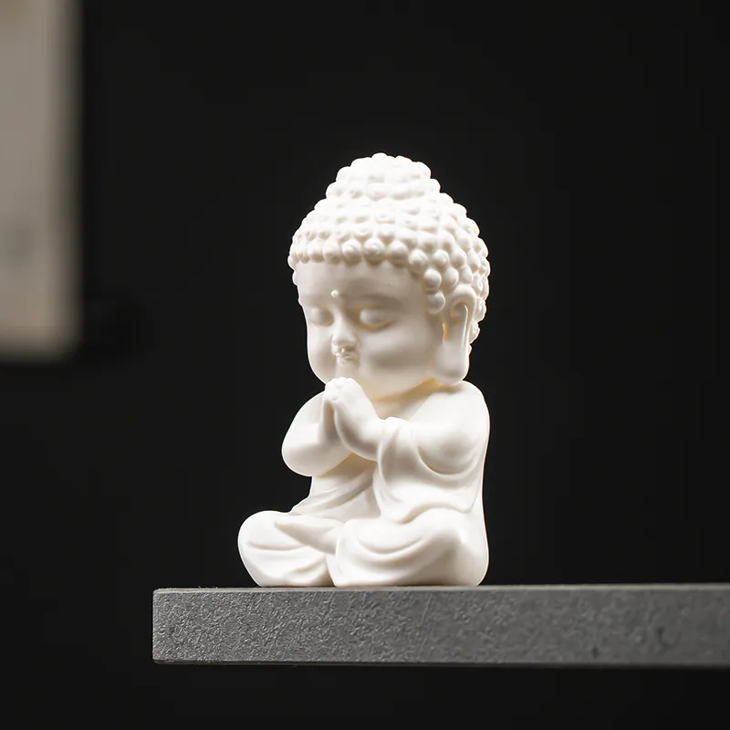 White ceramic Buddha statue tabletop ornamentWhite ceramic Buddha statue tabletop ornament